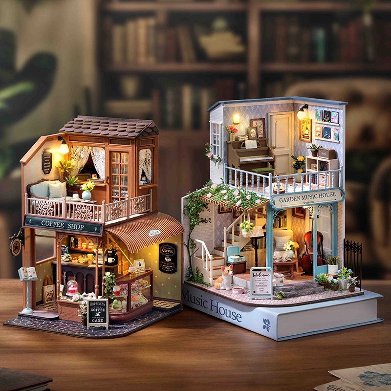 DIY 3D Puzzles Wooden Dollhouse Furniture Light Kit Doll House Casa Miniature Accessories Wooden Toys For Kid Xmas Birthday Gift