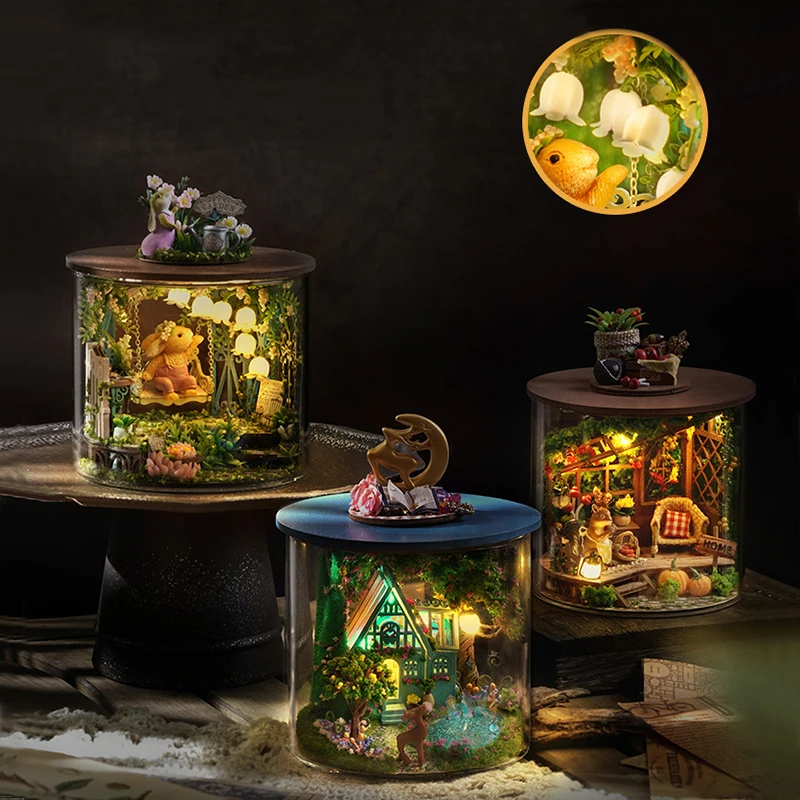 Mini DIY Kits Dream Bottle Doll Houses Making Assembling Room Models Toys Home Bedroom Decorations With Furniture Wooden Crafts
